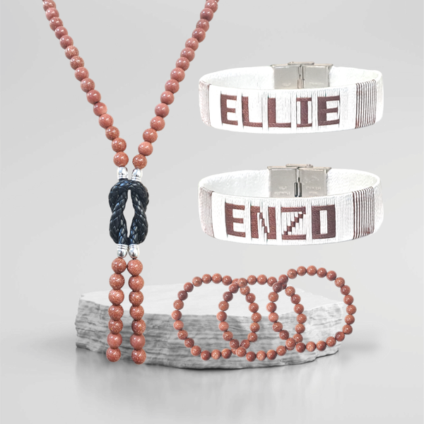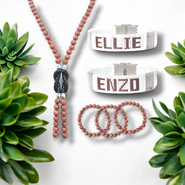 - C'est un beau collier fabriqué avec du cuir UP et la perle de sable.