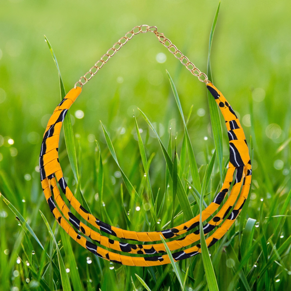 - C'est un beau collier en tissu avec la chaine d'élongation en acier inoxydable.