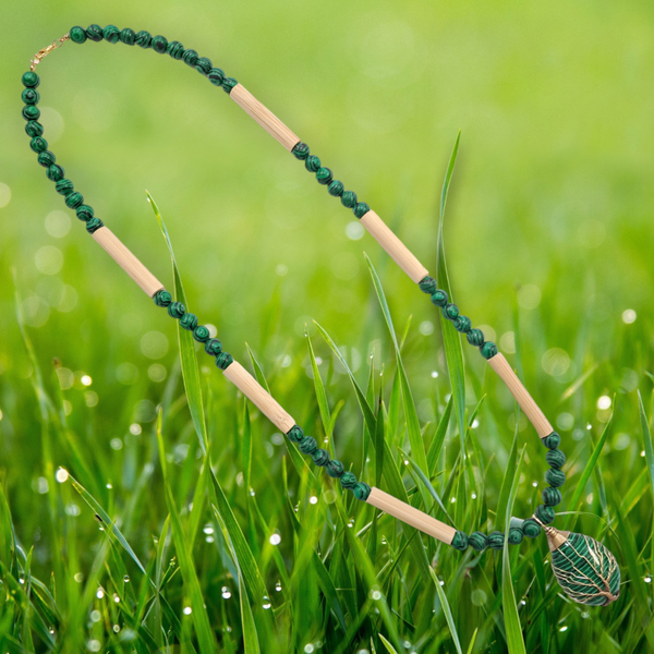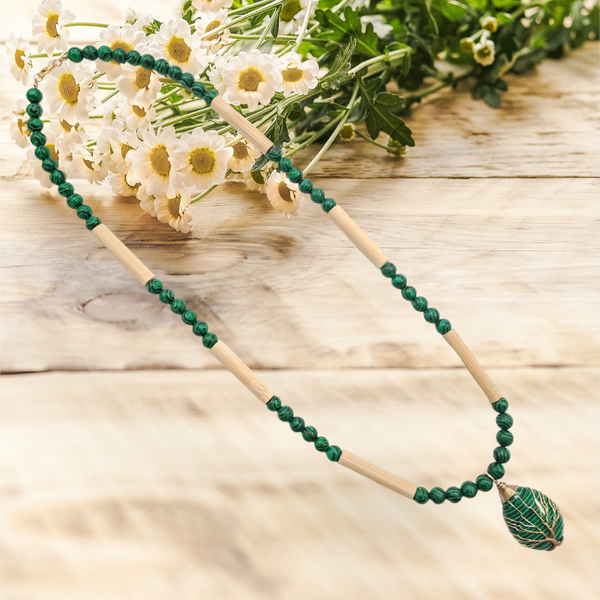 - C'est un beau collier fabriqué avec la perle malachite et un pendentif en perle malachite. Le bacelet complémentaire est aussi disponible.
