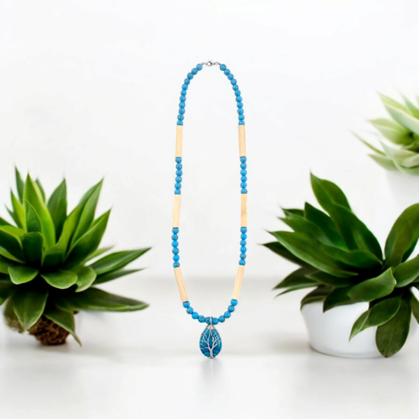 - C'est un beau collier fabriqué avec la perle turquoise peinte bleue et un pendentif. Le bacelet complémentaire est aussi disponible.