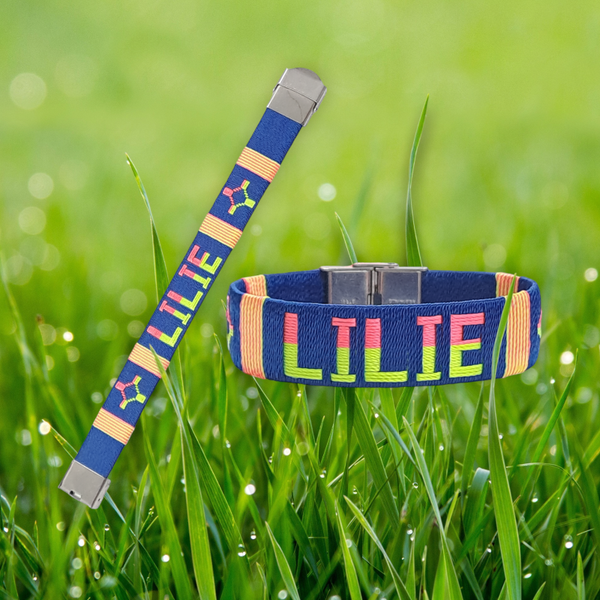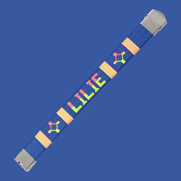 - C'est un bracelet personnalisé sur mesure sur lequel est inscrit le nom que vous voulez avec les couleurs de votre choix. Vous pouvez aussi y faire inscrire des chiffres, des lettres ou encore une combinaison des deux. Vous pouvez également y faire inscrire deux noms (pour un couple ou des amis par exemple). Cependant, nous tenons à vous informer que moins il y a de caractères mieux c'est. Il peut arriver que nous communiquons avec vous sur votre commande pour vous informer que le nombre de caractères que vous avez demandés à inscrire sur le bracelet ne pourrait pas y figurer car étant trop long (cas rares).