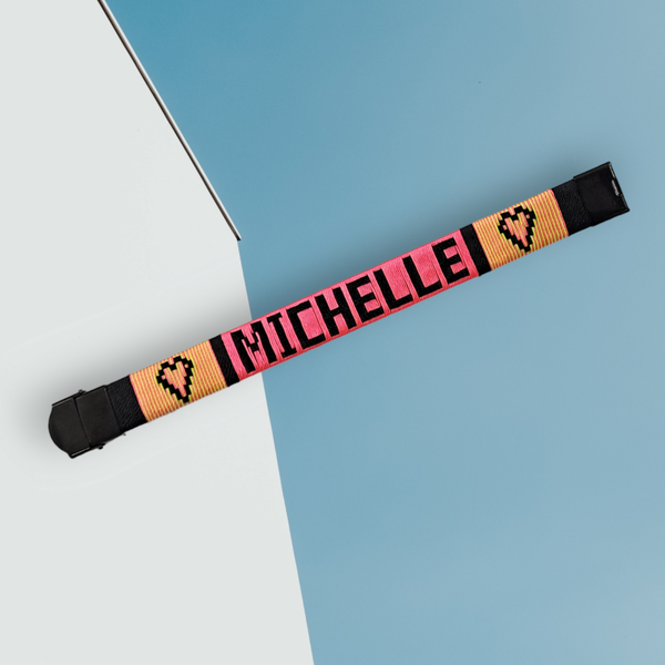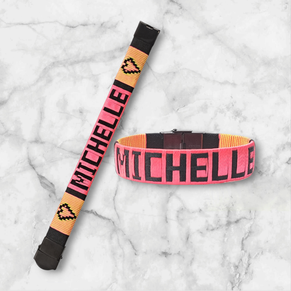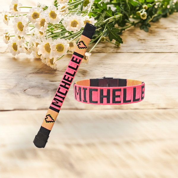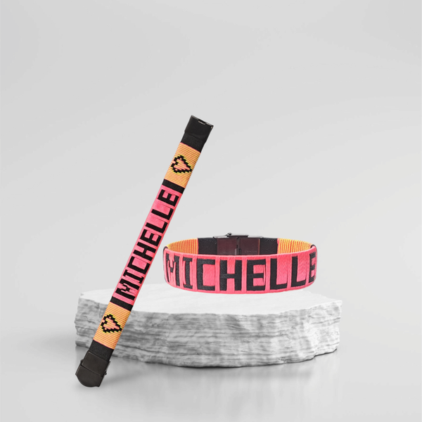 - C'est un bracelet personnalisé sur mesure sur lequel est inscrit le nom que vous voulez avec les couleurs de votre choix. Vous pouvez aussi y faire inscrire des chiffres, des lettres ou encore une combinaison des deux. Vous pouvez également y faire inscrire deux noms (pour un couple ou des amis par exemple). Cependant, nous tenons à vous informer que moins il y a de caractères mieux c'est. Il peut arriver que nous communiquons avec vous sur votre commande pour vous informer que le nombre de caractères que vous avez demandés à inscrire sur le bracelet ne pourrait pas y figurer car étant trop long (cas rares).