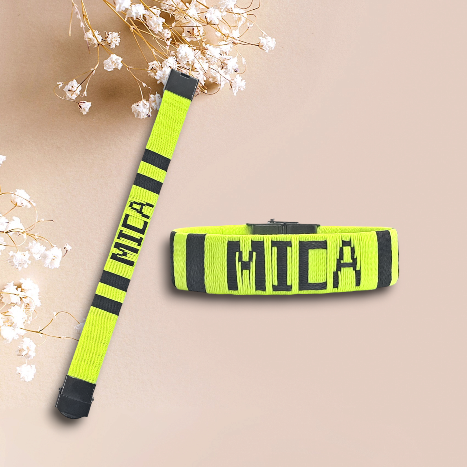 - C'est un bracelet personnalisé sur mesure sur lequel est inscrit le nom que vous voulez avec les couleurs de votre choix. Vous pouvez aussi y faire inscrire des chiffres, des lettres ou encore une combinaison des deux. Vous pouvez également y faire inscrire deux noms (pour un couple ou des amis par exemple). Cependant, nous tenons à vous informer que moins il y a de caractères mieux c'est. Il peut arriver que nous communiquons avec vous sur votre commande pour vous informer que le nombre de caractères que vous avez demandés à inscrire sur le bracelet ne pourrait pas y figurer car étant trop long (cas rares).