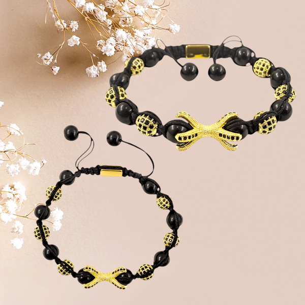 - C'est un très beau bracelet en perle de cristal noir rond et des accessoires d'espacement, le tout tressé en shambala.