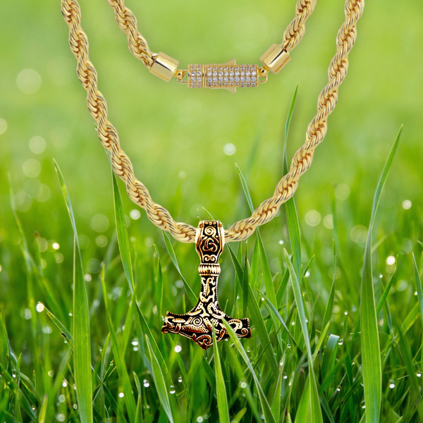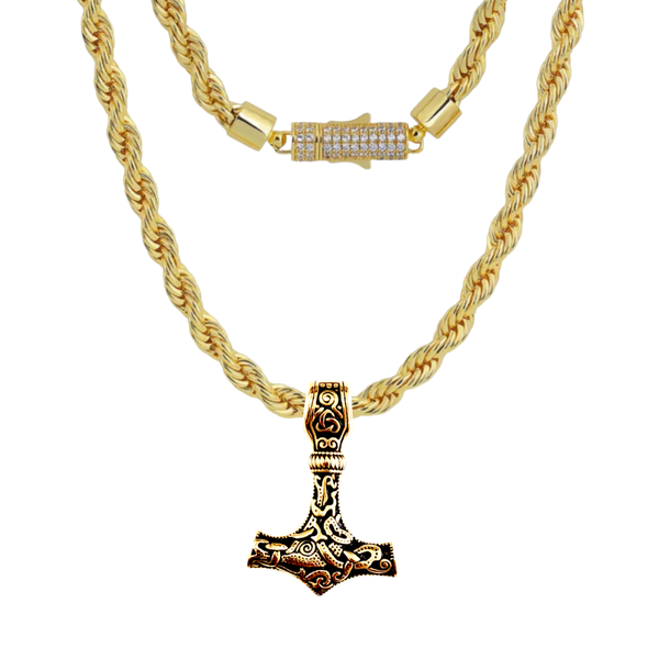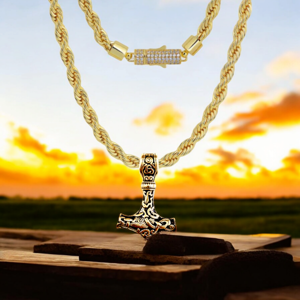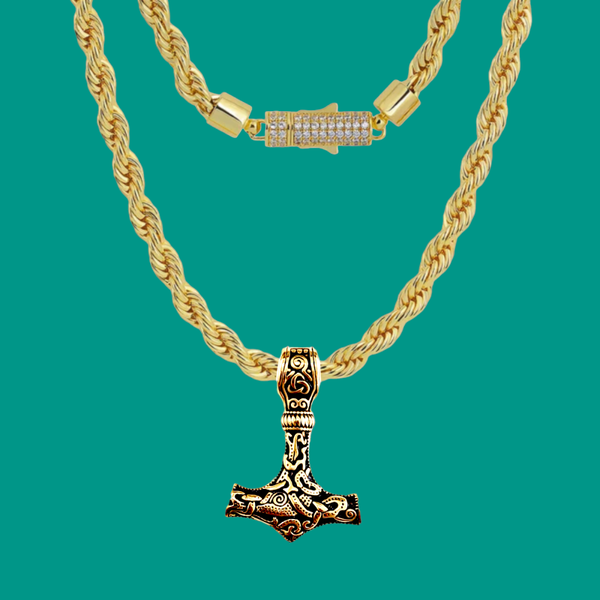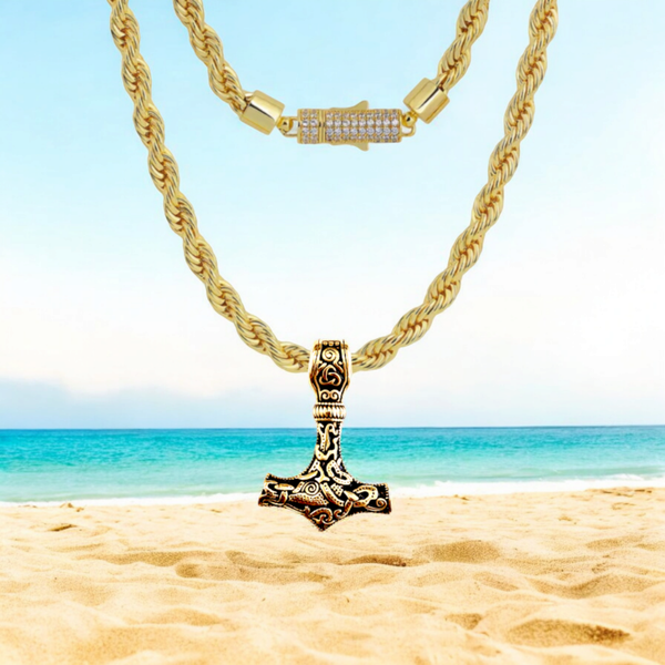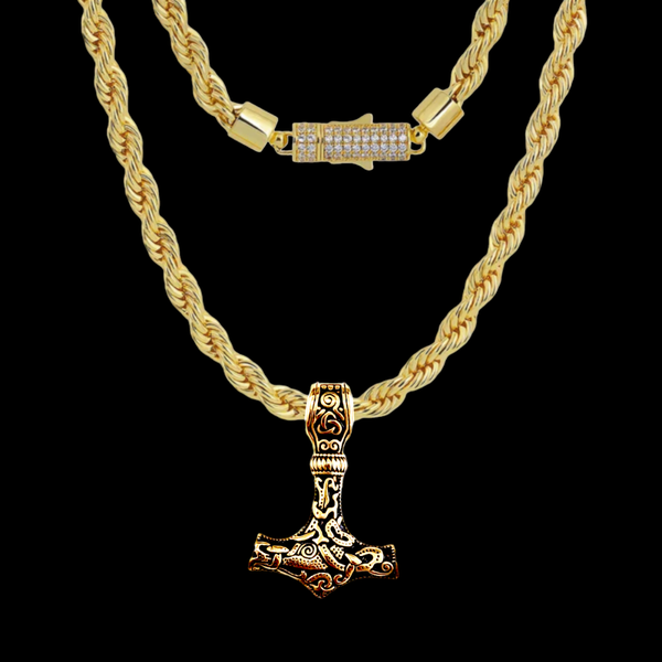 - C'est un beau collier avec un pendentif, en chaine torsadée, acier inoxydable, 5mm, plaqué or 18k. Le pendentif mesure 4,5 cm.