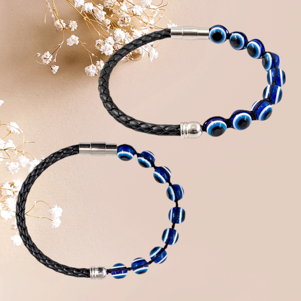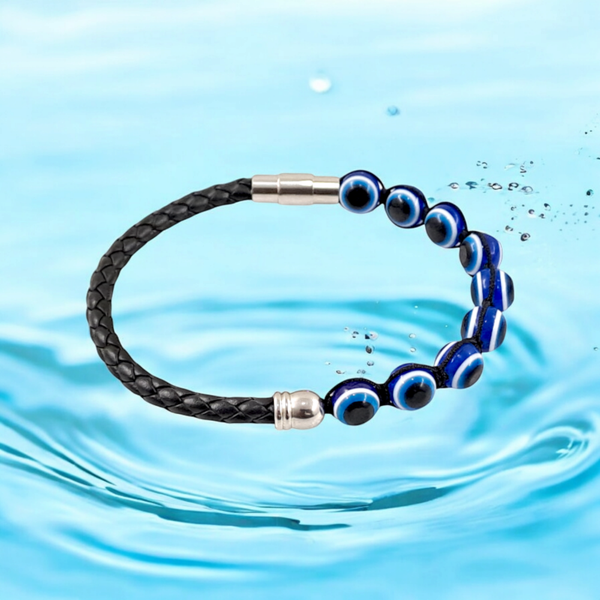 ● C'est un très beau bracelet en cuir UP et en perle ''oeil protecteur'' tressée avec du fil nylon.