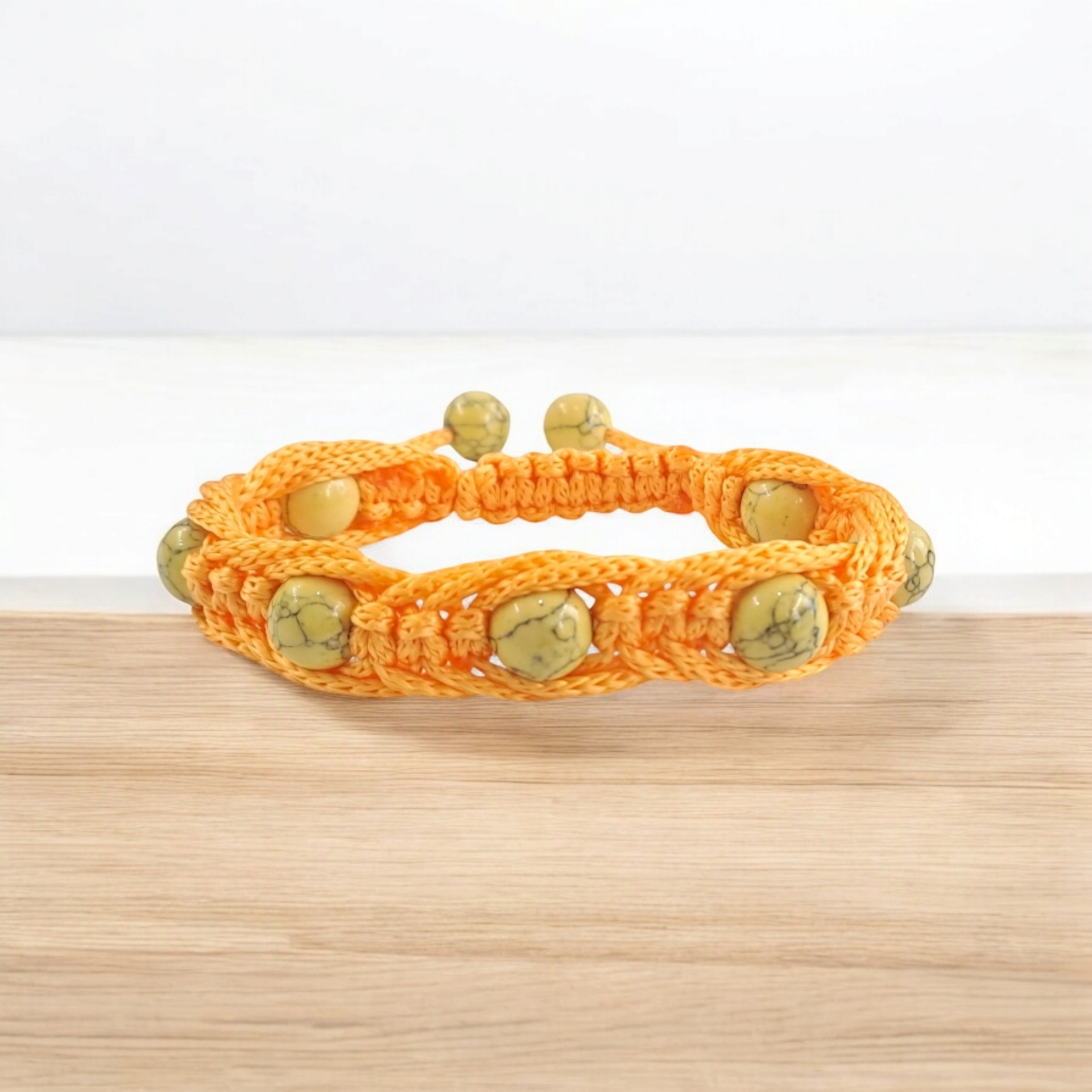 ● C'est un très beau bracelet en perle howlite jaune tressée avec du fil paracorde.