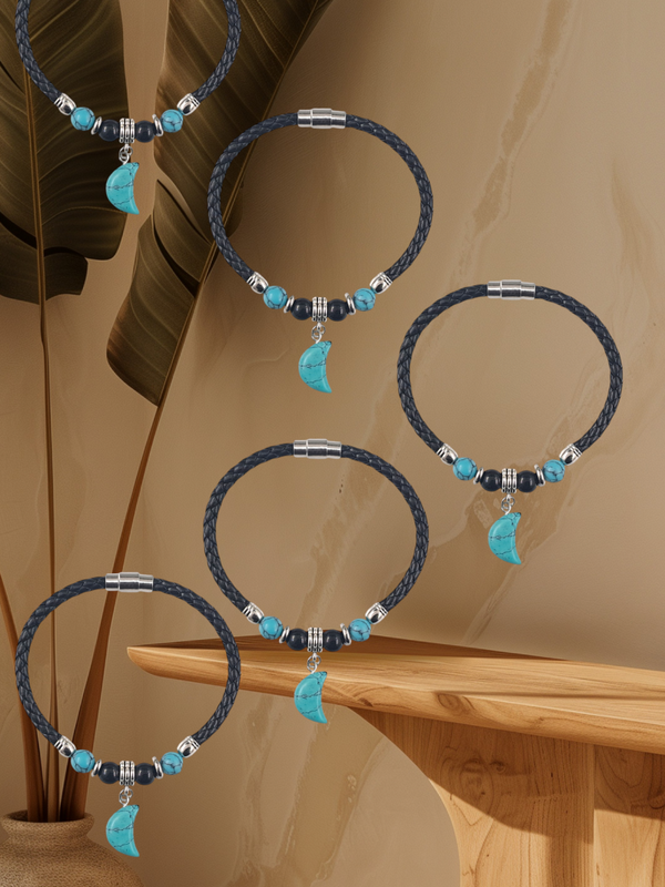 ● C'est un très beau bracelet en perle howlite bleu et vert et du cuir Up, avec un fermoir aimanté.