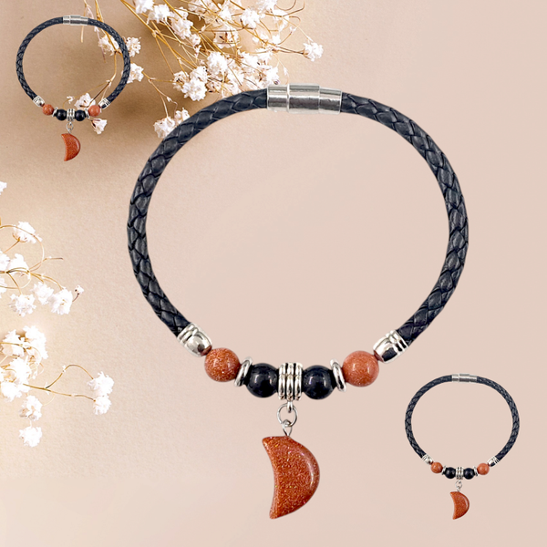 ● C'est un très beau bracelet en perle de sable dorée et du cuir Up, avec un fermoir aimanté.